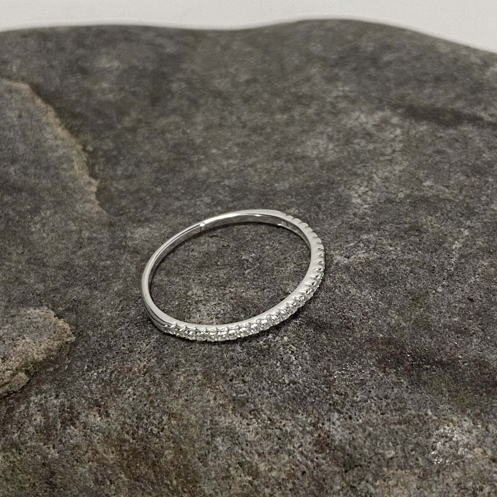 A Sterling Silver CZ Eternity Ring, elegant and meaningful. Makes the perfect gift for a special someone. Hallmarked '925', available in multiple sizes. 1 gram.